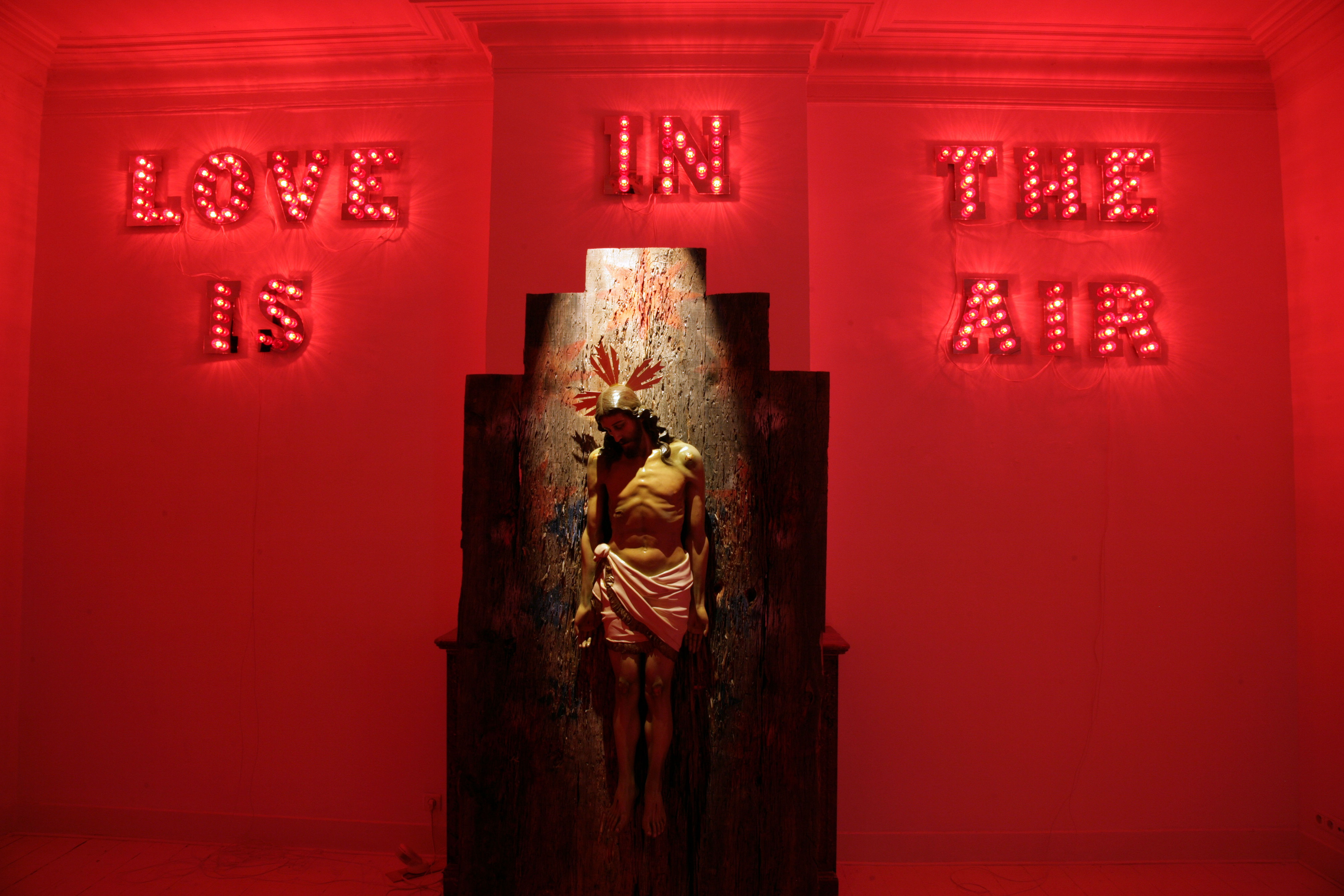 Despite the neon sign in the form of an artist’s signature, the official name of the “Aires” bar is Alter Ego – which throws some light on the founder’s approach, but requires a few explanations. By dint of working with small people, the question naturally arises as to their relationship with the rest of the world in everyday life: on this basis, Carlos Aires developed his bar as an ironic metaphor for his relationship with the contemporary art world, the critics, curators, collectors and gallery owners, before whom you must kneel to receive approval… thus the visitors, bending down before the dwarf barman, can feel, during the time it takes them to drink a glass of Spanish champagne, the humility required by an artist to draw attention to his work. Or simply the pleasure of having a drink to forget all about it.