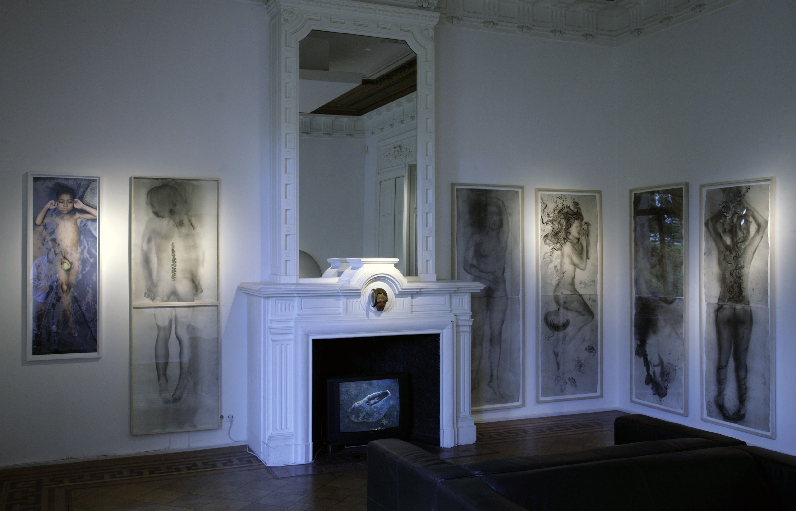 For Charley Case this "suicide" of the current, patriarchal system, announces the coming of a new world, this time matriarchal. Thus, Woman occupies pride of place in the artist's new production. In the series Endormies, she is associated with the vegetal element, a poetic illustration of notions of growth and decline that now so monopolize media attention. While resident-artist at the Casa d'Oro (Ariège), Case occupied a grotto that he designated as a midwives' ward (and not shamanic); the triptych video he made renders homage to maternity and to the line of "female guardians" of the venue - those of today, and those from thousands of years ago whose skeletal remains were found there. At each floor the exhibition, a human skull, carved by Charley Case, illustrates his vision of an existence of perpetual renewal.